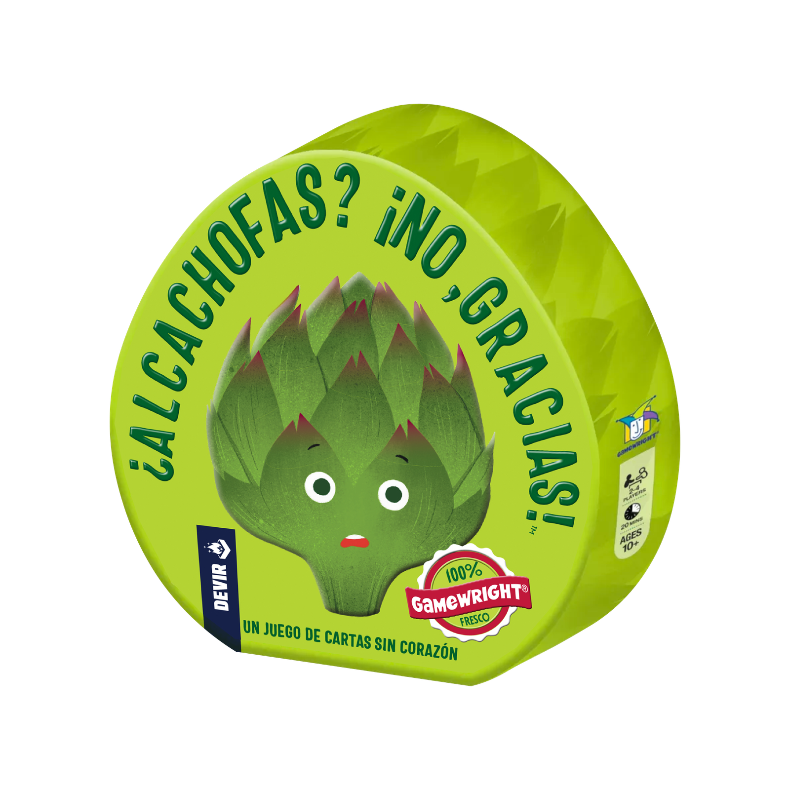 “Alcachofas ¡No, gracias! es un juego de creación y gestión de mazos diseñado por Emma Larkins e ilustrado por Bonnie Pang. Está recomendado a partir de 10 años y lo pueden disfrutar de 2 a 4 jugadores, que tendrán como objetivo ser los primeros en podar todas sus cartas de alcachofa y cosechar otras 10 verduras frescas y sabrosas. Dentro de esta divertida caja, que simula una gran alcachofa, encontraréis 104 cartas: 4 de referencia para los jugadores, un mazo con 40 cartas de alcachofa y otro mazo con 60 cartas de otras verduras.