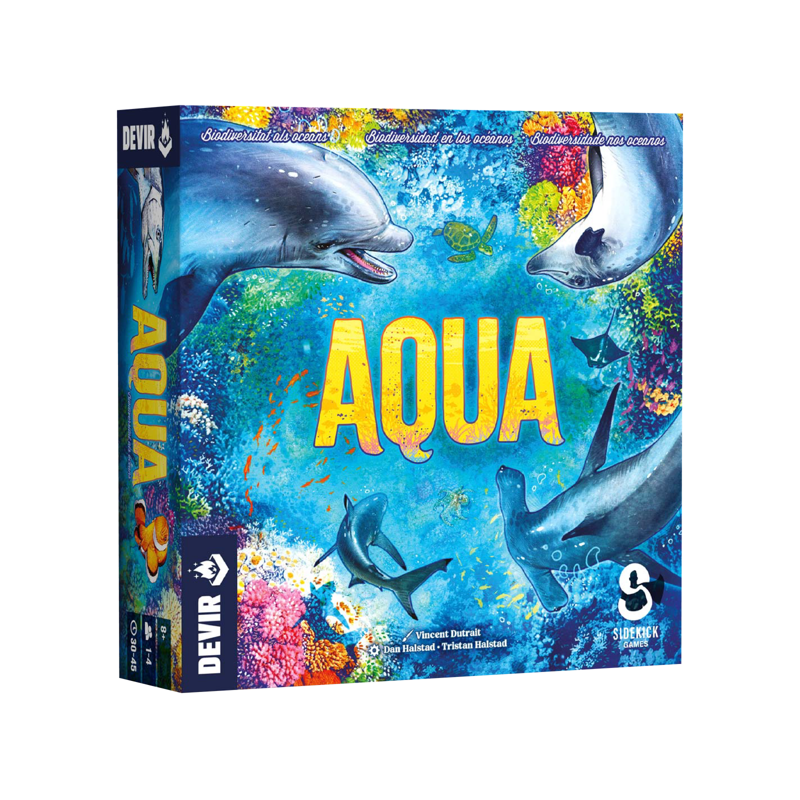 Diseñado por Dan Halstad y Tristan Halstad e ilustrado por Vincent Dutrait, AQUA se puede disfrutar en solitario o en grupos de hasta 4 jugadores, a partir de 8 años, en sesiones de entre 30 y 45 minutos de duración. Con el objetivo de sumar la mayor cantidad posible de puntos al final de la partida, los jugadores irán creando arrecifes de coral para atraer todo tipo de especies marinas a su zona de juego.