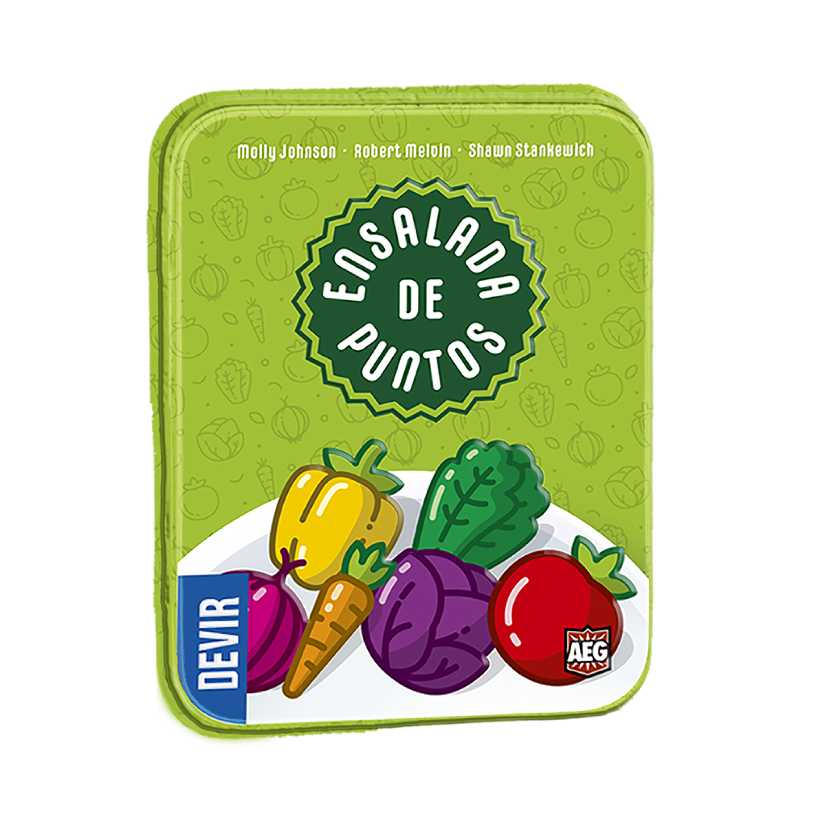 Ensalada de puntos es un juego rápido y divertido en el que hay más de 100 formas diferentes de puntuar. En cada turno los jugadores deberán elegir una carta de verdura sobre el tablero y decidir si la quieren utilizar por la forma de puntuar que aparece en ella o por la verdura que es. ¿Quieres ser el rey de las zanahorias? ¿O prefieres llevar el estandarte pimien-tomatil? Cuando se terminen las cartas, el jugador con más puntos será el ganador. ¡Fresco y para toda la familia! Claves de venta:1. Un pequeño juego en formato lata con miles de combinaciones.2. Se explica en un minuto, se juega en 10 y no podrás jugar solamente una partida.3. Lo comprarás para tí y querrás que tus amigos también lo tengan.Mecánicas:1. Selección de cartas2. Colección de cartas Premios y Nominaciones 2021 Spiel des Jahres Recommended 2021 GEEKS d’OURO Best Family/Party Board Game of the Year Nominee 2020 UK Games Expo Best New Card Game (General) Nominee 2020 Origins Awards Best Card Game Winner 2020 Origins Awards Best Card Game Nominee 2020 Nederlandse Spellenprijs Best Family Game Winner 2020 Nederlandse Spellenprijs Best Family Game Nominee 2020 JUGuinho Families Game of the Year Finalist 2019 Meeples’ Choice Nominee 2019 Golden Geek Best Family Board Game Nominee 2019 Golden Geek Best Card Game Nominee 2019 Cardboard Republic Socializer Laurel Nominee 2019 Board Game Quest Awards Best Family Game Nominee
