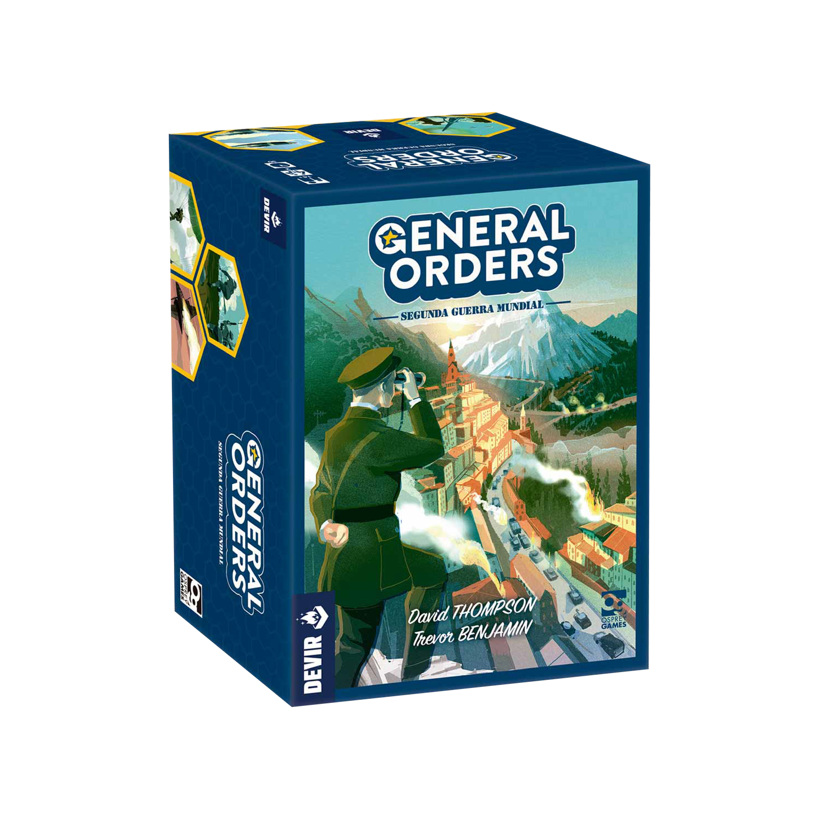 Obra de David Thompson y Trevor Benjamin e ilustrado por Alex Green, General Orders: Segunda Guerra Mundial es un título para dos jugadores, a partir de 14 años, que ofrece partidas de unos 30 minutos de duración. Este juego pone a dos comandantes enemigos cara a cara, en lucha por el control de un campo de batalla. Ambos jugadores deberán equilibrar sus ganas de apoderarse de recursos estratégicos con la necesidad de asegurar las líneas de suministro, evitar asaltos aéreos y bombardeos de artillería, así como proteger el cuartel general propio.