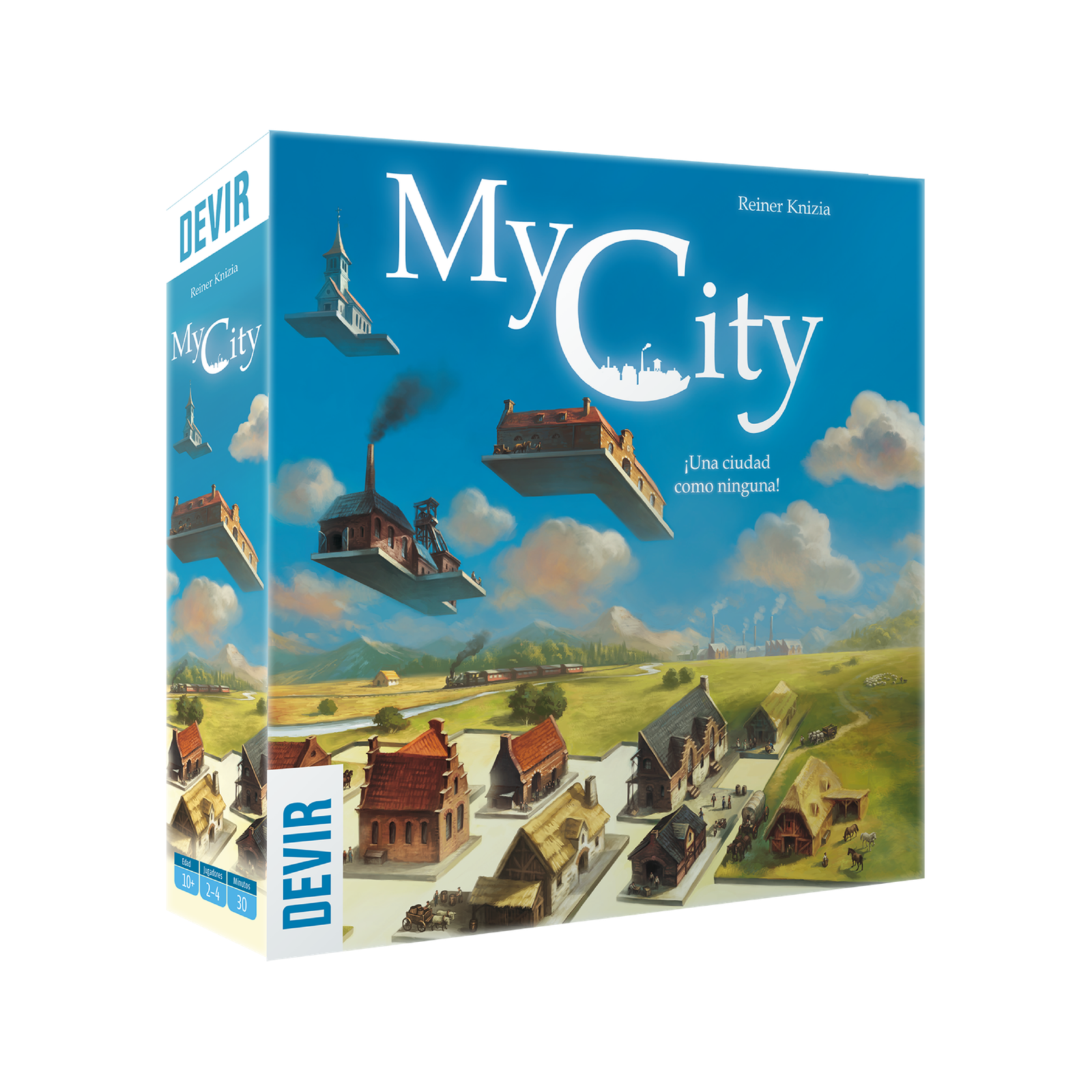My City es un juego competitivo en el que desarrollas una ciudad en tu propio tablero de juego a través de los siglos.
