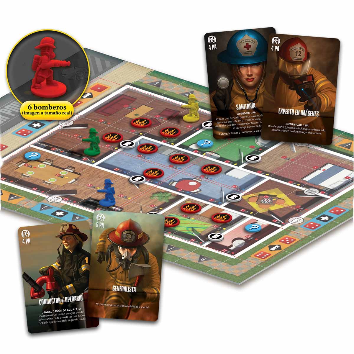 ¡Rescate! es un galardonado juego cooperativo para entre 2-6 personas, diseñado por Kevin Lanzing, en el que todos los jugadores forman parte de un equipo de valientes bomberos. Cada turno está repleto de tensión al tener que combatir el abrasador fuego para poder salvar víctimas o investigar puntos de interés. Para ello, cada bombero tendrá que hacer el mejor uso posible de sus limitadas acciones, así como de determinar si mueve el vehículo de emergencia para resguardarlo o para disparar la manguera de cubierta en un intento desesperado por apagar las temibles llamas.
