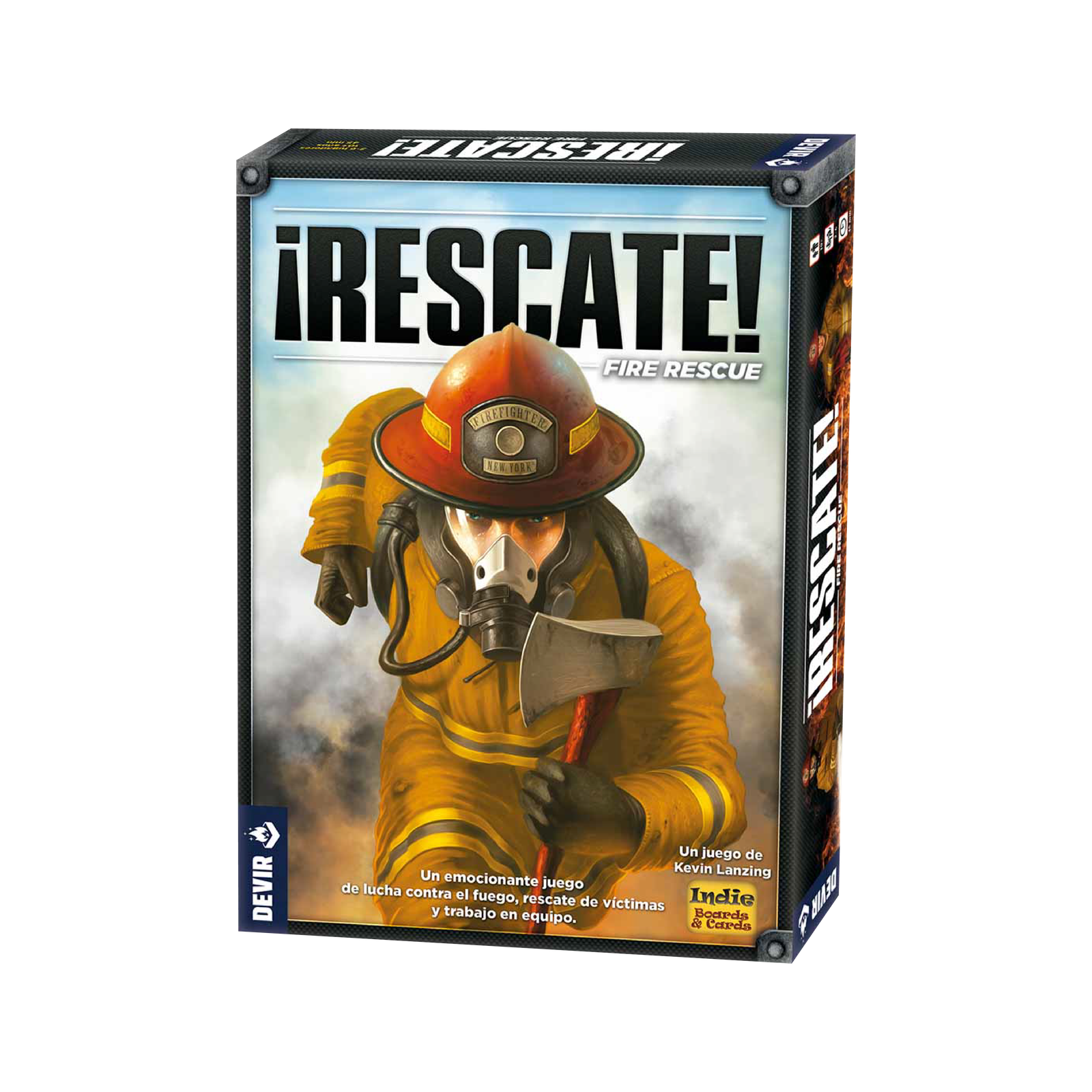 ¡Rescate! es un juego cooperativo de rescate de incendios para de 2 a 6 jugadores diseñado por Kevin Lanzing en el que cada bombero hará todo lo posible para intentar rescatar la mayor cantidad de vidas posibles antes de que el edificio en llamas colapse. Hay dos modos de juego en ¡Rescate!, un juego básico y un juego para expertos. En ambas variantes, los jugadores intentan rescatar a 7 de las 10 víctimas de un incendio en un edificio. Mientras los jugadores intentan rescatar a las víctimas, el fuego se propaga a otras partes del edificio, causando daños estructurales y posiblemente bloqueando los caminos a través de su interior. En cada turno, un jugador puede gastar puntos de acción para intentar apagar incendios, moverse por el edificio, sacar a las víctimas o realizar diversas acciones especiales, como mover vehículos de emergencia. Si 4 víctimas mueren en el incendio o el edificio se derrumba por sufrir demasiado daño estructural, los jugadores pierden. De lo contrario, los jugadores ganan instantáneamente cuando rescatan a una séptima víctima. La variante experta incluida en el juego agrega elementos temáticos como destellos, materiales inflamables, configuración aleatoria y variaciones en la dificultad del juego desde principiante hasta heroica. El juego incluye también un tablero de doble cara con dos planos de construcción diferentes. Para aprender a jugar a ¡Rescate! no te pierdas los vídeos y tutoriales en Devir TV.